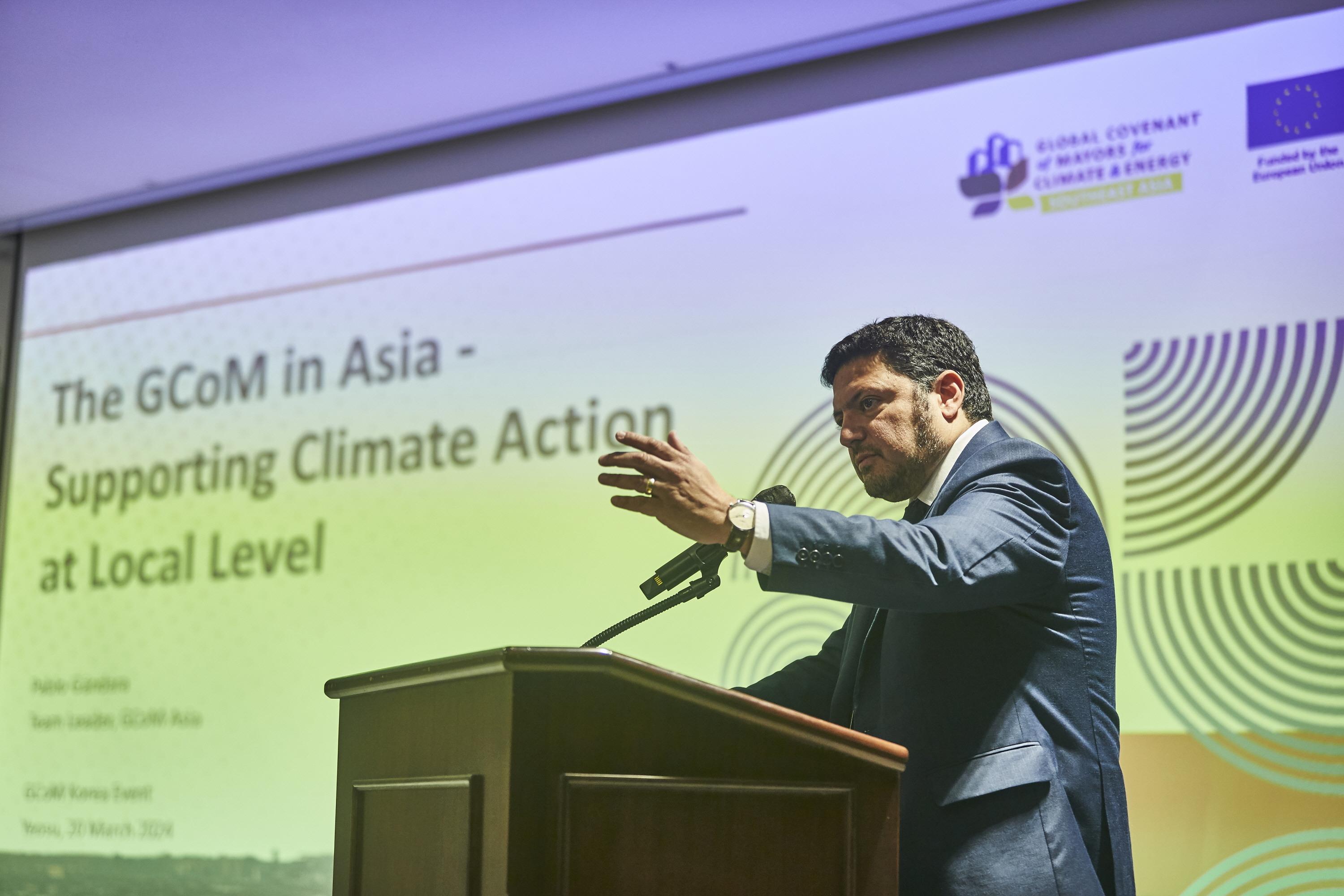 GCoM 세션은 GCoM 아시아 프로젝트 Pablo Gandara 팀장이 GCoM에 대한 전반적인 소개와 GCoM 아시아 프로젝트에 참여하고 있는 5개 사무국(중국, 동남아시아, 인도네시아, 말레이시아, 베트남)의 2023년도 활동사항을 공유했다. GCoM 사업의 사무국별 활동내역과 성과, 해결해야 할 도전과제 등을 설명하며 이번 포럼에 참석한 GCoM 담당자들에게 GCoM에 대한 다양한 활용 방안을 보여주었다.
