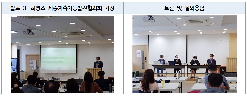 최병조 세종지속가능협의회 처장은 기업소모성자재 구매를 대행하는 MRO(Maintenance, Repair and Operation)를 소개하며 기업의 역할을 강조하였다. 또한 SDGs 12번인 지속가능한 소비와 생산을 언급하며, 제품의 구매 뿐 아니라 설계부터 친환경성에 대한 고려가 필요함을 강조하였다.
