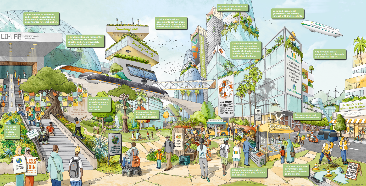 도시는 대부분의 사람들이 사는 곳으로, 새로운 아이디어가 싹트고, 자연을 위협하는 대부분의 소비가 이루어지고, 많은 결정이 내려지는 곳이다. 도시는 생물다양성을 보호하고 자연과 사람들을 연결하는 데 중요한 역할을 한다. 도시는 사람들이 살고, 일하고, 놀고, 생산과 소비를 하는 공간이며 자연과 사람들에게 직접적이고도 때론 돌이킬 수 없는 영향을 미치는 일상적인 결정이 내려지는 곳이기 때문이다. 또한, 그 영향력은 도시의 범위를 훨씬 뛰어넘을 때가 많다. 그러므로 도시는 자연과 환경에 더욱 책임감을 느끼고 행동해야 한다.