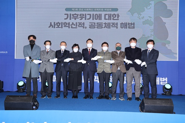 ![]() [기후&에너지] 기후위기 극복 위해 사회혁신, 공동체 함께 해법: 경남 사회혁신 국제포럼·박람회 '기후위기 대응'을 중심적으로 논의하는 '경남 사회혁신 국제포럼·박람회'가 열리고 있다. 경남도는 "기후위기에 대한 사회혁신적, 공동체적 해법"을 주제로 2일부터 4일까지 사흘 동안 창원컨벤션센터와 경남도청에서 행사를 열고 있다. "경남 사회혁신 국제포럼·박람회"는 세 번째다. 첫날 창원컨벤션센터에서 열린 개회식에는 하병필 경남도지사 권한대행, 김영진 경남도의회 기획행정위원장, 박연희 이클레이 한국사무소 소장, 이찬원 경상남도기후?환경네트워크 상임대표 등 관계자들이 참석했다.