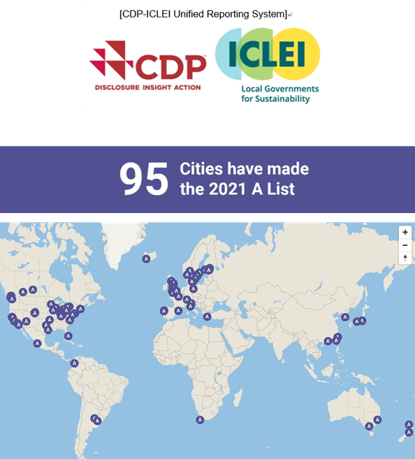2021 생태교통 정책카페 |CDP -ICLEI 통합보고시스템 점수평가 전 세계 95개 A 리스트 도시 ICLEI Korea Newsletter 2021. 12 지난 뉴스레터 보기