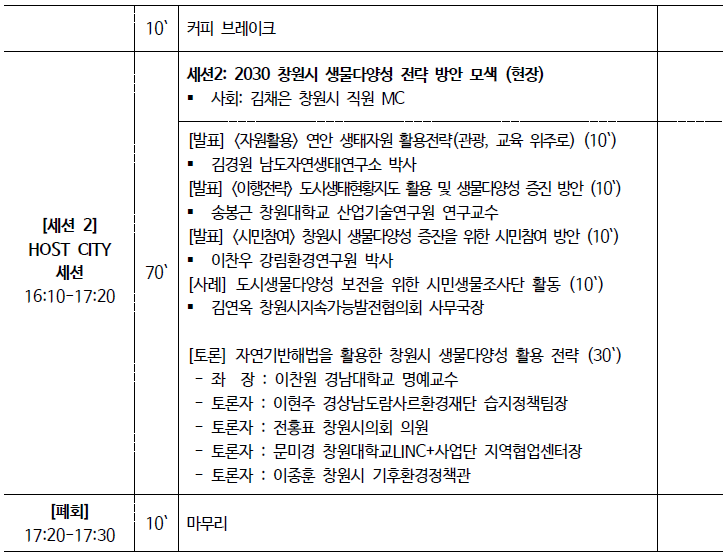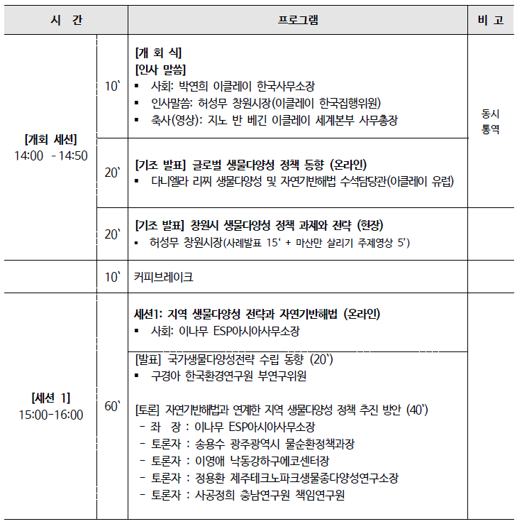 ○ 주제 : 자연기반해법과 지역 생물다양성 정책