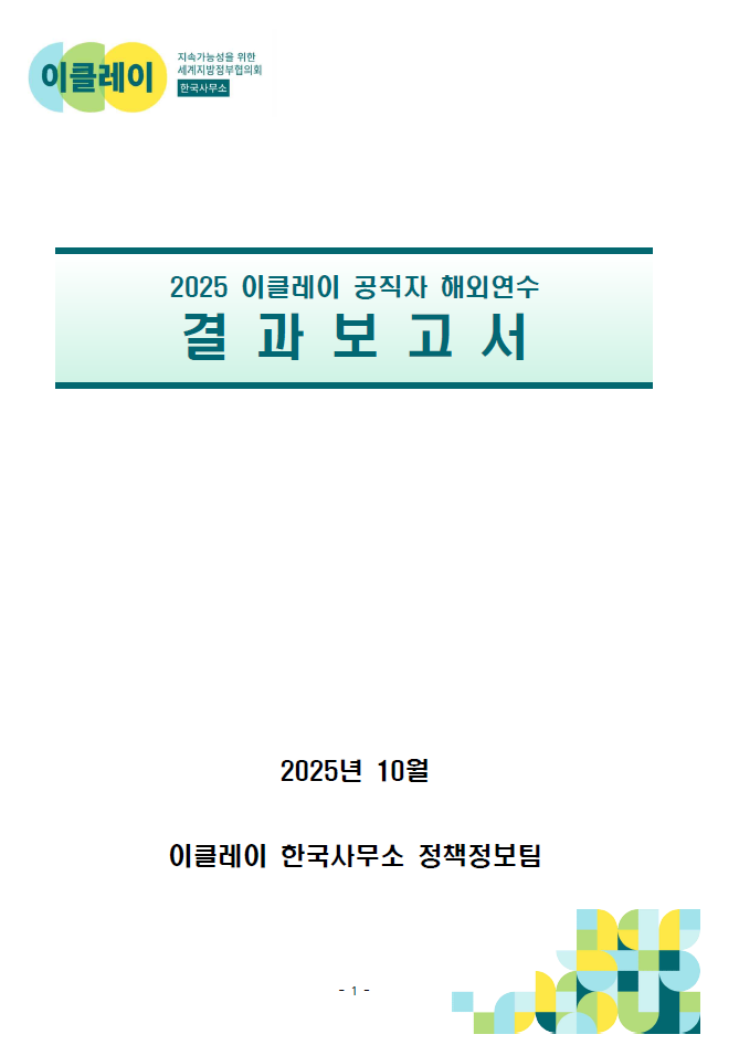 2025 이클레이 공직자 해외연수 결과보고서를 공유합니다.