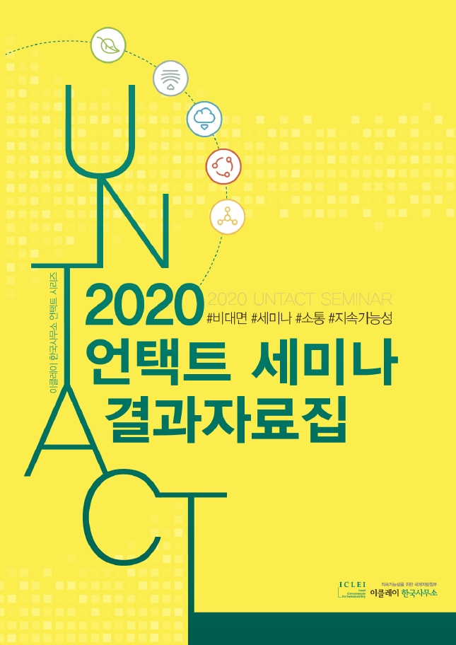 이클레이 한국사무소는 코로나19 장기화에 대응하여 “2020 언택트 세미나“ 시리즈를 통해 회원 지방정부와 비대면 회의를 2020년 5월부터 10월까지, 5개월 간 월1회 개최하였다. 이 새로운 시도를 통해 회원 지방정부 및 파트너 기관에 주제별 국내외 동향과 정책 정보를 제공하고, 글로벌 프레임워크와 지방정부 간 정책 연계 방향을 모색해보며 상호 협업 기회와 소통 확대의 기회를 마련하였다. 본 자료집은 1~5차시 세미나의 주요 메세지와 결과를 정리하였다.
