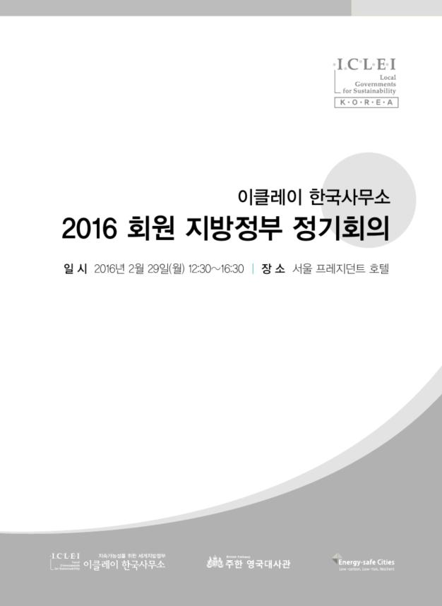 이클레이 한국사무소 2016 회원 지방정부 정기회의(2016.2.29.월/서울) 자료 및 한국사무소 발표자료입니다.