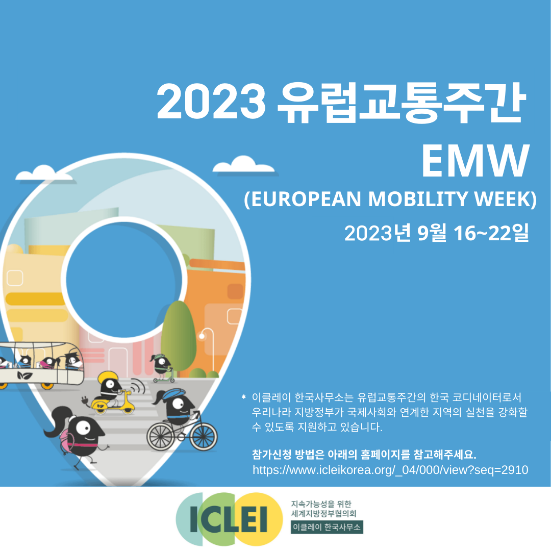 이클레이 한국사무소는 유럽교통주간의 한국 코디네이터로서 지방정부가 국제사회와 연계한 지역 실천을 강화할 수 있도록 지원하고 있습니다. 자세한 유럽교통주간 참가 방법은 링크를 확인 바랍니다. 지방정부의 많은 참가 바랍니다.