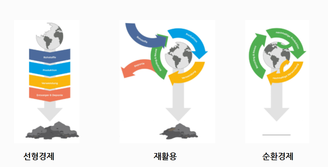 순환경제는 선형경제에 대비되는 개념으로 순환형(닫힌 고리) 경제체제 내에서 자원의 가치가 최대한 머무를 수 있도록 합니다. 이는 궁극적으로 사용되는 자원의 총량을 줄이고 자원의 활용을 극대화 하며, 폐기물을 Zero에 가깝게 관리할 수 있습니다.