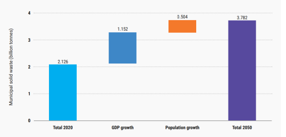 <2024년 글로벌 폐기물 관리 전망> 보고서는 획기적인 변화 없이 현재의 추세대로 폐기물이 배출된다면 2050년 연간 폐기물 배출량이 3.78백만톤이 이를 것이라고 예측합니다. 인구 증가와 경제 성장을 고려한 규모입니다. 2020년 2.12백만톤 대비 50% 이상 증가한 예측치입니다.