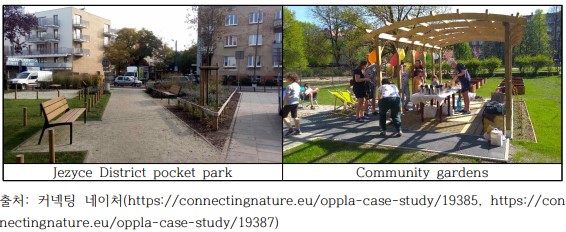 유럽에서는 자연기반 해법을 통해 도시들이 지속가능한 도시 개발을 할 수 있도록 재정을 지원하는 “커넥팅 네이쳐 (Connecting Nature) 프로젝트”를 운영하고 있다. 이 프로젝트에는 영국 글래스고, 벨기에 헹크, 폴란드 포즈난이 참여했다.