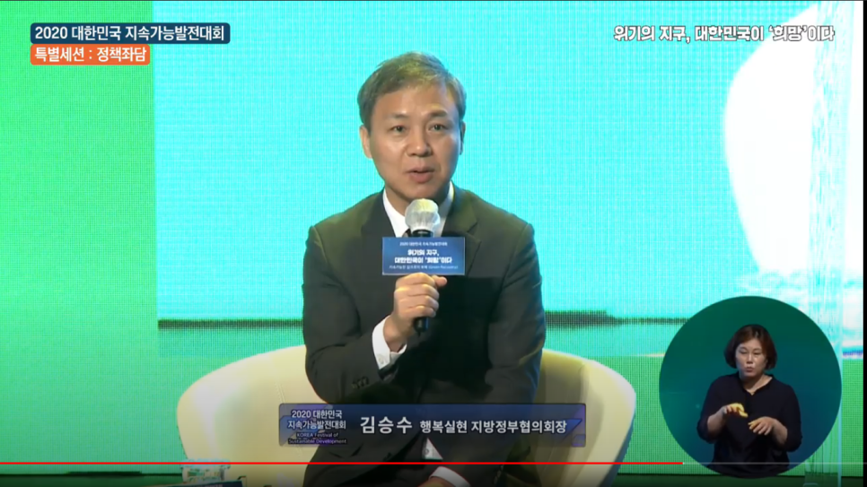 지난 14일에 시작된 2020 대한민국 지속가능발전대회의 개막식 날, 개막식 이어