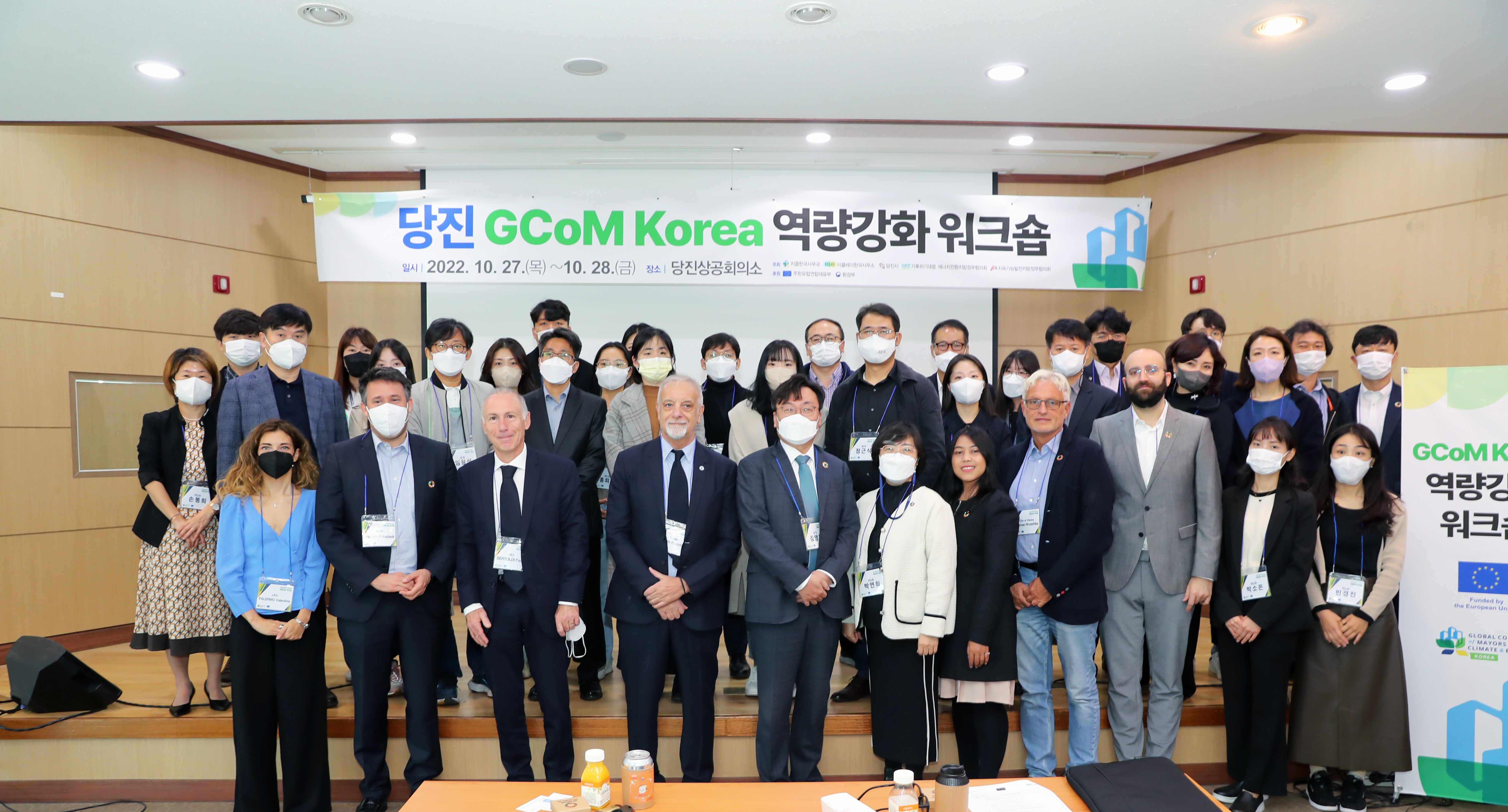 지콤(GCoM, 글로벌 기후에너지 시장협약) 한국사무국은 2022.10.27(목)~28(금) 양일간 당진상공회의소에서 기후변화 적응 및 완화를 위한 지방정부 담당자들의 역량강화를 목표로 개최한 워크숍을 성황리에 마무리했다. 이번 워크숍은 주한유럽연합대표부와 지콤 아시아사업팀, 환경부의 후원으로 지콤 한국사무국과 이클레이 한국사무소, 당진시, 지속가능발전지방정부협의회, 기후위기대응·에너지전환 지방정부협의회가 공동주최했다.